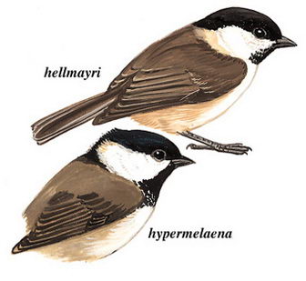 描述:体小(11.5厘米)的山雀。头顶及颏黑色,上体偏褐色或橄榄色,下体近白,两胁皮黄,无翼斑或项纹。与褐头山雀易混淆但通常无浅色翼纹而具闪辉黑色顶冠。亚种hypermelaena的上体沾橄榄绿,有时显露蓬松的短冠羽;dejeani相似但顶冠少光泽;brevirostris的上体灰色较重而下体色浅,翼纹较淡;hellmeyeri的上体褐色较重。 详细见: →沼泽山雀百科