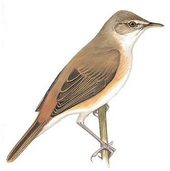 描述:中等体型(13厘米)的纯色无纵纹苇莺。具模糊的白色眉纹,眼纹短而色深,耳羽色略暗,嘴长。上体橄榄褐色,腰及尾上覆羽色调较暖。下体白色,胸侧及两胁栗黄。头形略尖。甚似布氏苇莺,但上嘴色较深,浅色眼先宽而清晰,色彩较深而暖。与远东苇莺及稻田苇莺的区别在无深色的上眉纹,与钝翅苇莺的区别在棕色较少,橄榄色调较重,腰色暗淡,两翼较长。 详细见: →芦莺百科